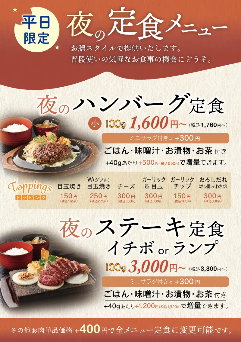 今年から、平日限定の夜定食のメニューが始まりました☆
