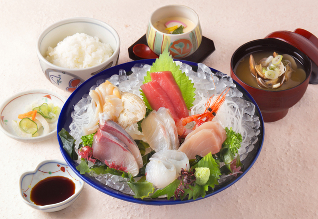 本日の刺身7種盛り、茶碗蒸し、ご飯、漬け物、みそ汁2200円(税込2420円)