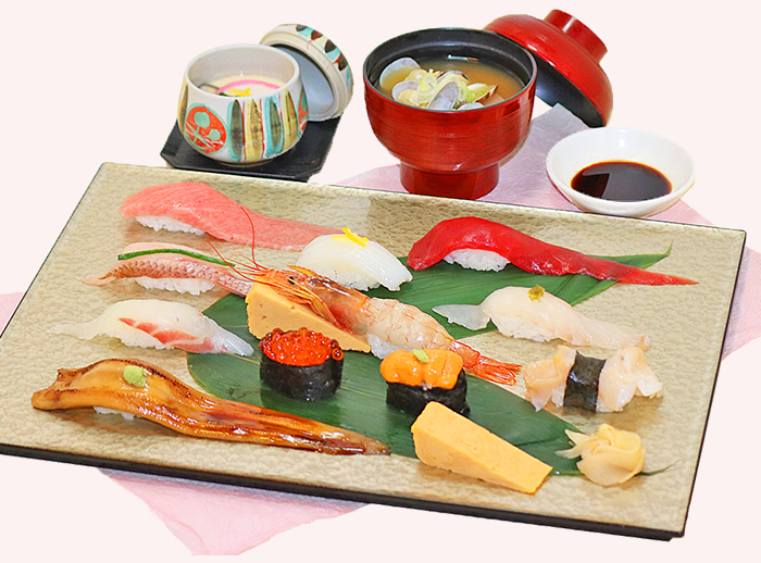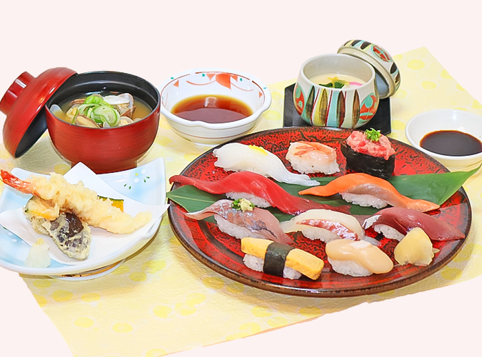 すし8貫又は10貫、茶わん蒸し、みそ汁