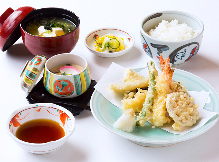 天ぷら盛合せ、茶わん蒸し、ごはん、漬物、みそ汁1750円(税込1925円)